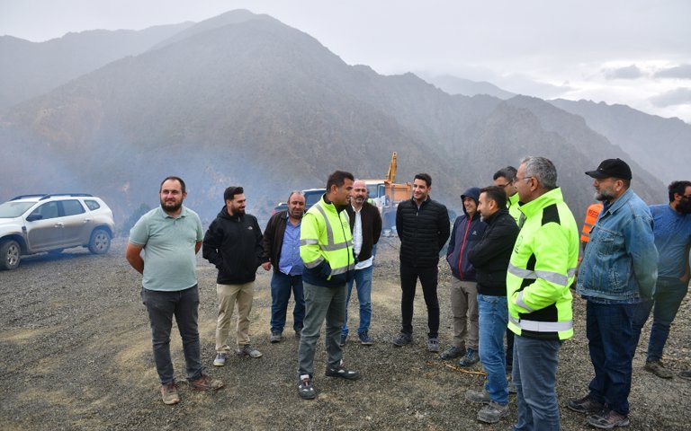 DSİ Çoruh Projeleri 26. Bölge Müdürü Celal TOKALAK Yusufeli İlçesi Irmakyanı Köyü Yeni Yerleşim Yeri Köy Yolu İnşaatında incelemelerde bulundular.
